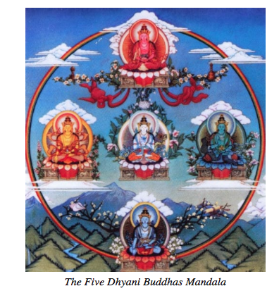 Viisi Dhyani-Buddhaa ovat taivaallisia Buddhia, jotka visualisoidaan meditaation aikana.
